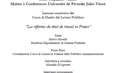 Mercoledì 23 Maggio 2018, alle ore 10.00, presso il Dipartimento di Scienze Politiche dell’Università degli Studi di Napoli “Federico II”, nell’ambito del Corso di Diritto del Lavoro Pubblico, il Prof. Stèphane Vernac (Maitre à Conferences...